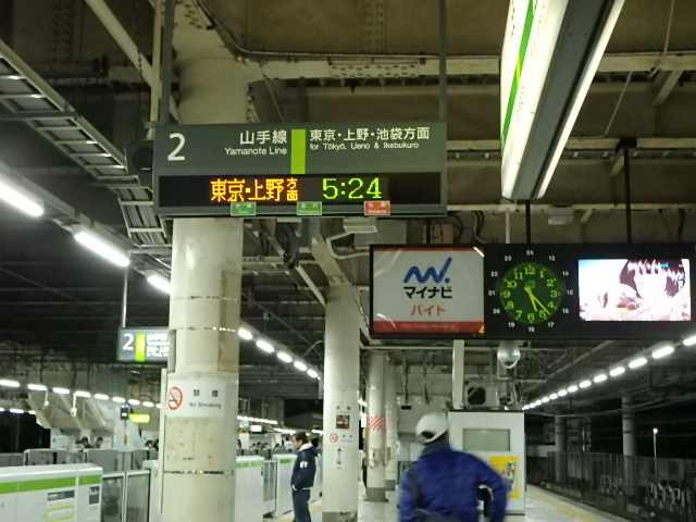 12月30日。4時に起きるつもりが2度寝してしまい気付けば時刻は4時半。やっちまったなぁ~。部屋の片づけとか全然していなかったので大急ぎで流しの洗い物を片付けシャワーを浴び5時過ぎに出発。5時24分の山手線で上野に向かう。
