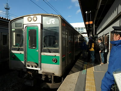 5時46分、列車は定刻通り上野を出発。一路宇都宮を目指す。が、大宮の手前で(さいたま新都心か?)列車が足止めをくらう。大宮駅で非常停止ボタンが押されたとのこと。もぉ~マジかよ・・・。しかし数分後「安全が確認できたため運転を再開します。」というアナウンスとともに再び列車は動き出した。その後は車内で気絶。そしてふと目覚めた時に車内の電光掲示板に「車両故障の影響で宇都宮線の黒磯ー宇都宮間で上り列車が運休」なる情報が。なんか毎年この辺ではこういうトラブルを見るなぁ。強風で日光線が止っていたり今回同様宇都宮ー黒磯間の下り列車が運休とかいう情報が流れたり。そういや数年前には架線にビニールが引っかかって白河駅で足止めをくらったこともあったな。昔のブログ参照→ http://ponpokosmile.blog.shinobi.jp/%E6%97%85/%E5%B9%B4%E6%9C%AB%E5%8C%97%E6%B5%B7%E9%81%93%E3%80%80%EF%BC%92%EF%BC%90%EF%BC%91%EF%BC%91%E3%80%80%E5%85%B6%E3%81%AE2