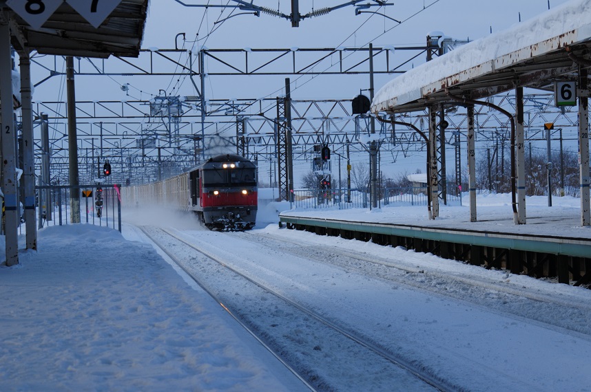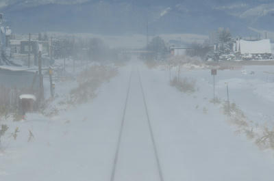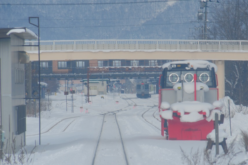 この時期に大活躍のラッセル車の脇を通過し列車は富良野駅をあとにした。