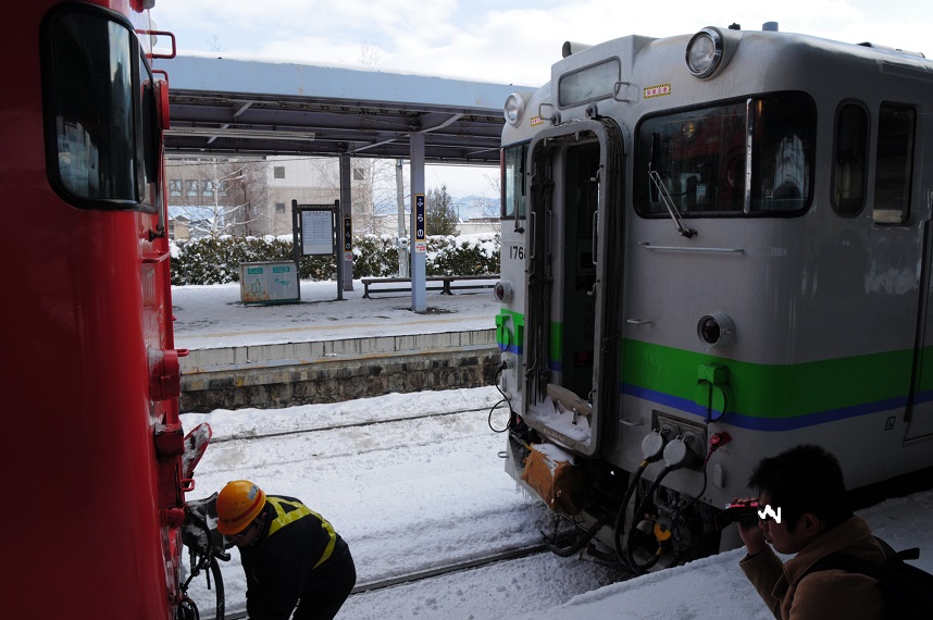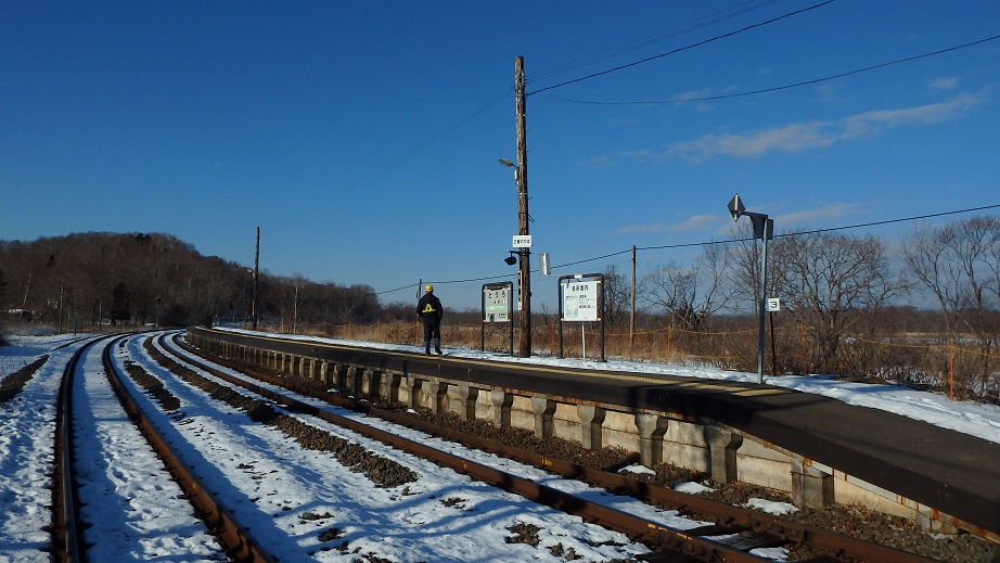 貨物駅なので乗客の乗り降りはないがここで乗務員の交代が行われる。お疲れさまでした~。