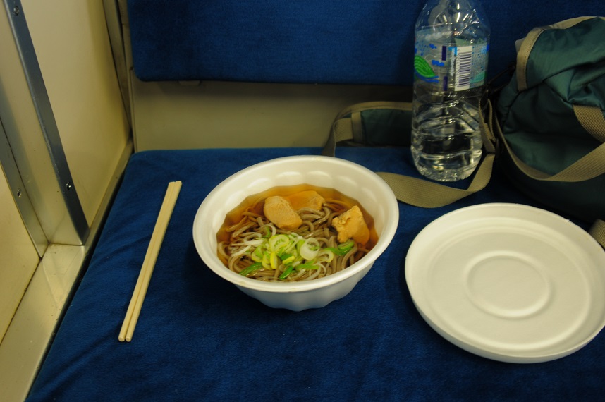 列車に揺られながらそばをすする。いや~旅情を感じるねぇ。去年の日高線、静内駅でやって以来だ。ペロッと平らげ心もお腹も大満足。