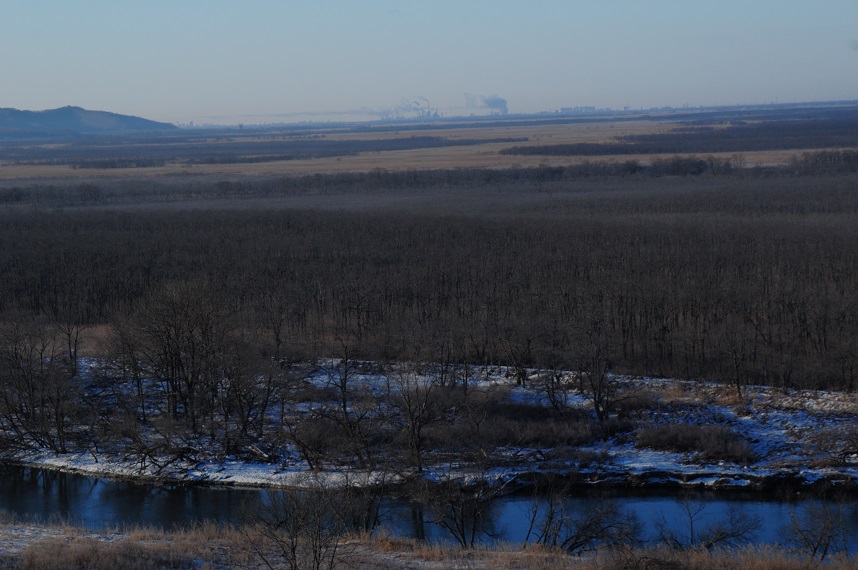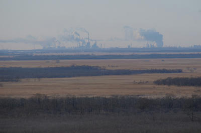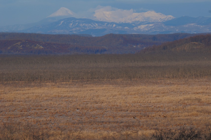 はるか遠くに新得の町が見える。