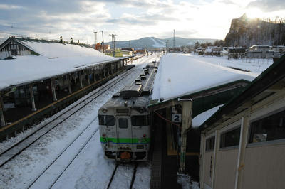 改札の外、待合室では相変わらず立ち食いうどんの「圭子ちゃんの店」が健在である。滝川の方があんなことになっていたのでちょっと不安だったんだがよかったよかった。今回は時間があまりないので食べないんだが一昨年、2429Dが5時間ほど遅れてきたときにはここでごちそうになった。その時の様子はこちら→ http://ponpoko.blog.shinobi.jp/http---ponpoko.blog.shinobi.jp-_5/%E5%B9%B4%E6%9C%AB%E5%8C%97%E6%B5%B7%E9%81%93%E3%80%802014%E3%80%80%E5%85%B6%E3%81%AE24