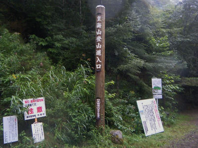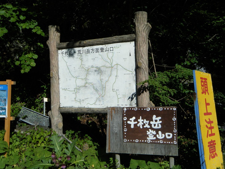 と思ったらあっという間に舗装路に出た。で歩くこと数分。千枚岳の登山口に到着。