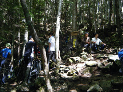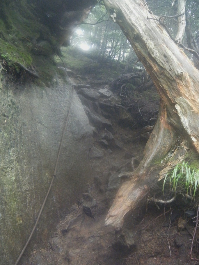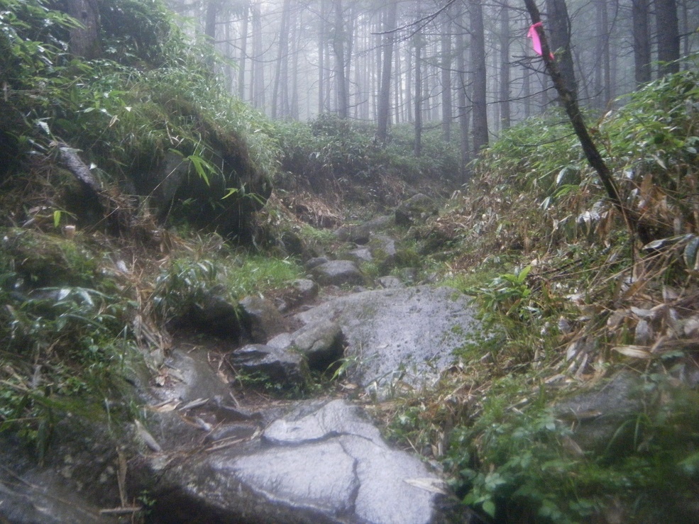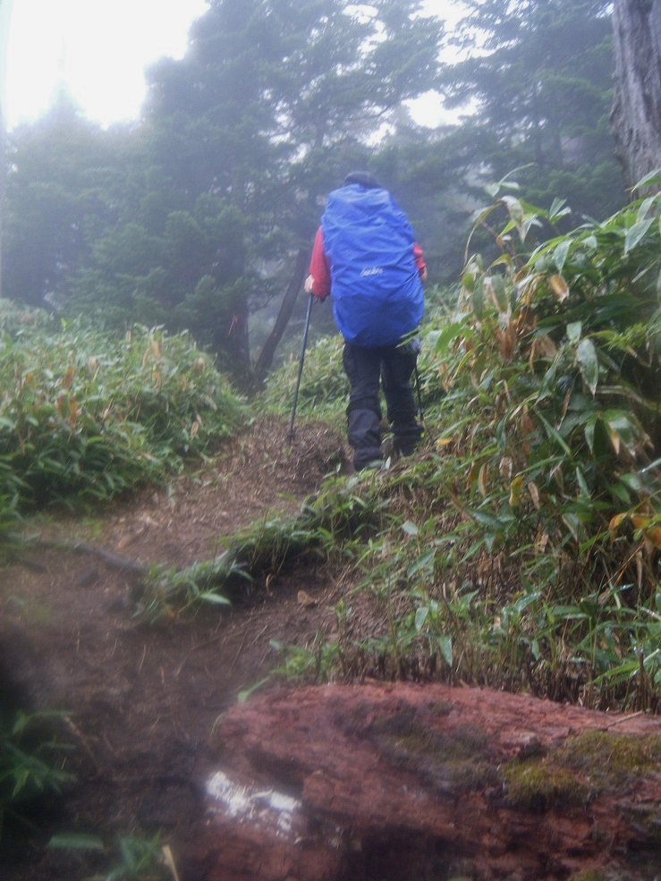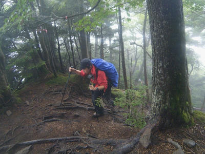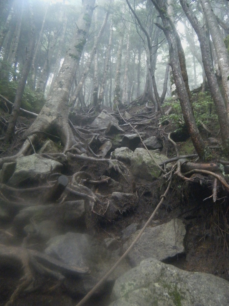 そろそろ見晴台につかにゃならんところなんだがまったくもってたどり着かん。延々と急登をこなす。つーか通り過ぎたか???ここでじいちゃんばあちゃんのパーティーを追い越す。「何時に出た?」と聞かれ8時14分と答えると「速いなぁ。私らは6時に出たよ。」と仰る。6時か~。ちょっとかかりすぎかな。でもまぁ僕も年をとるとこんなことになるんだろうな。明日は我が身だ。