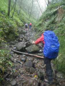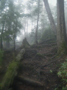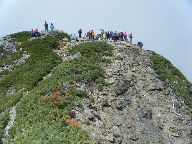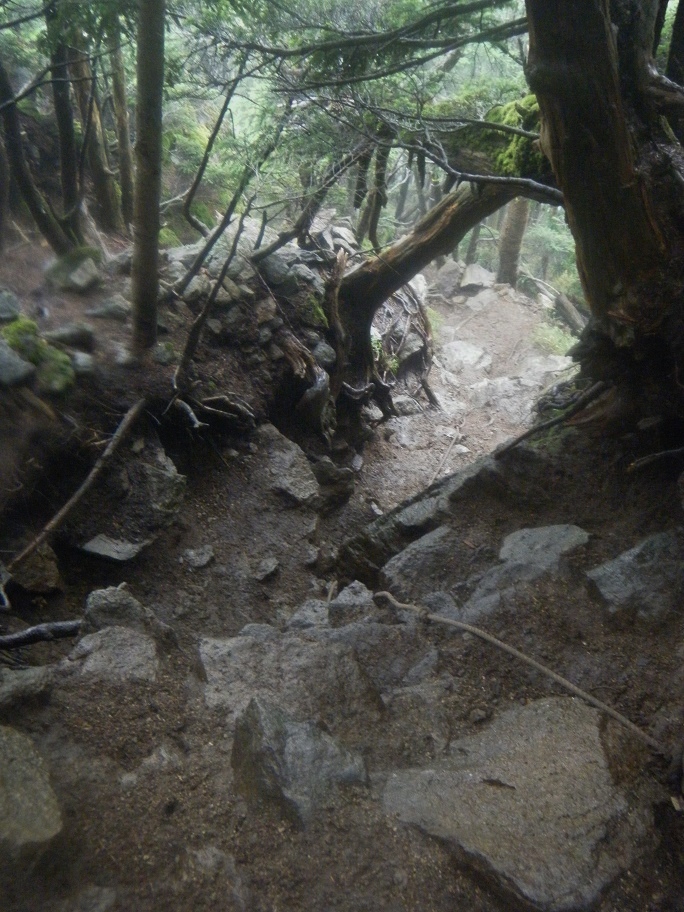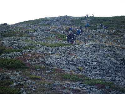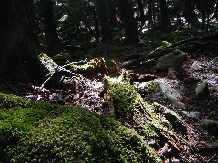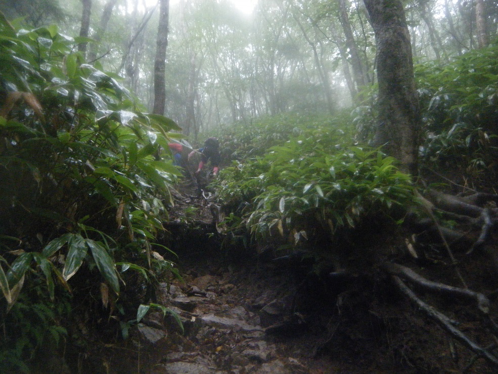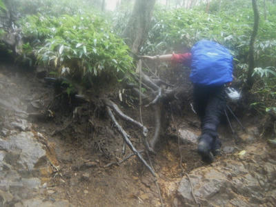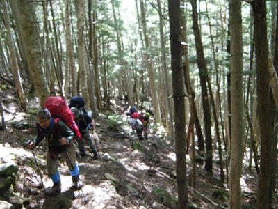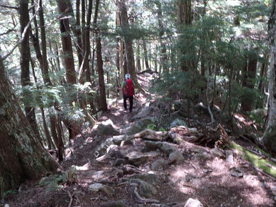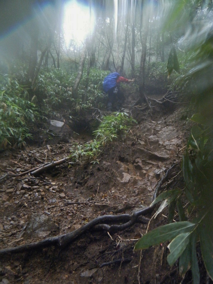 そろそろ見晴台につかにゃならんところなんだがまったくもってたどり着かん。延々と急登をこなす。つーか通り過ぎたか???ここでじいちゃんばあちゃんのパーティーを追い越す。「何時に出た?」と聞かれ8時14分と答えると「速いなぁ。私らは6時に出たよ。」と仰る。6時か~。ちょっとかかりすぎかな。でもまぁ僕も年をとるとこんなことになるんだろうな。明日は我が身だ。