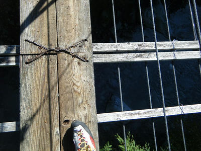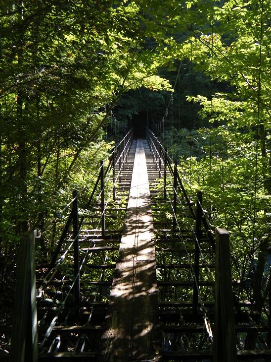 こないだの薬師沢小屋の前の橋よりも高いな。