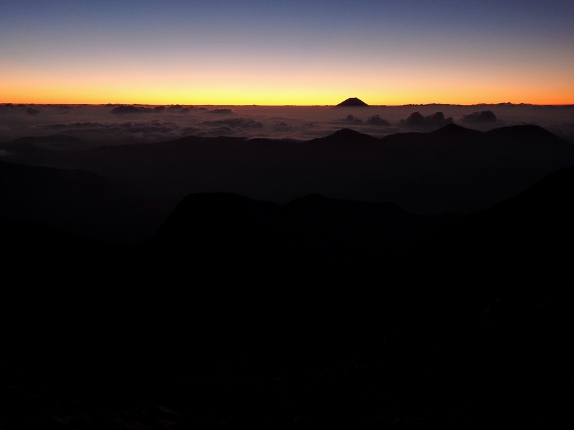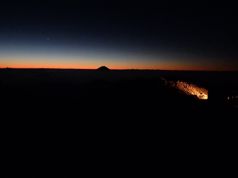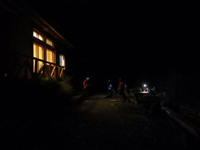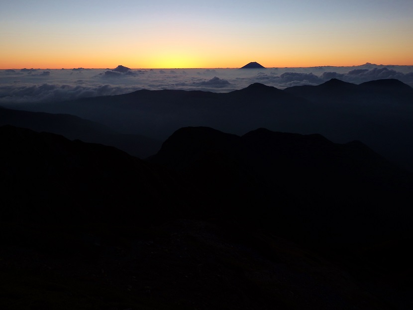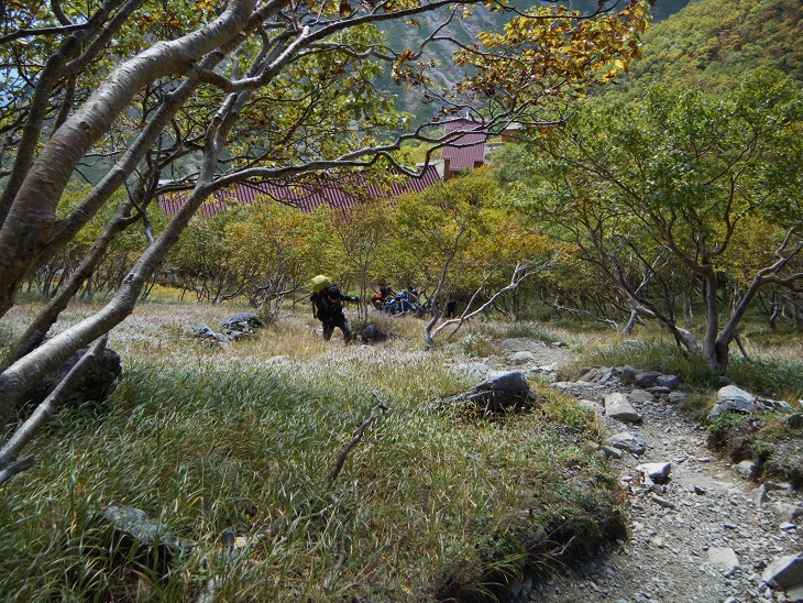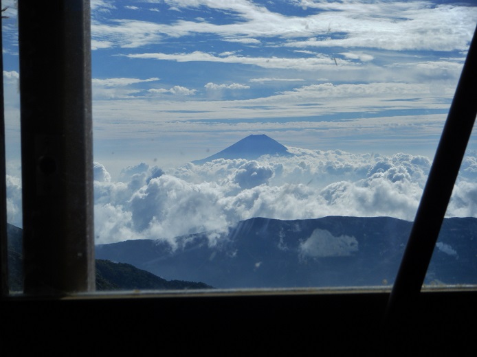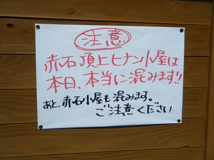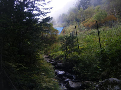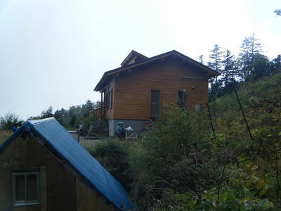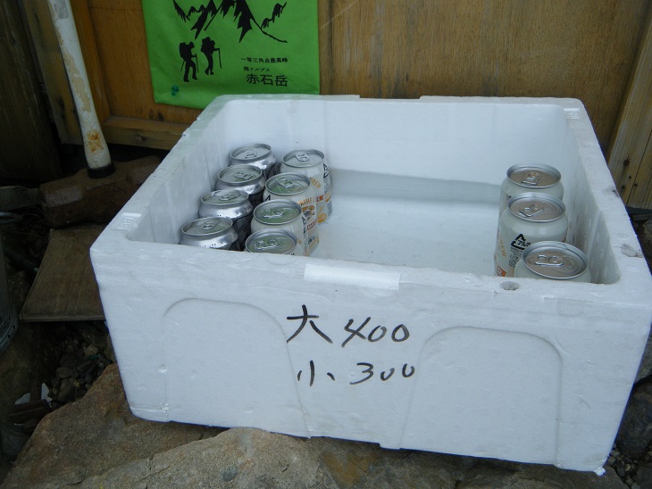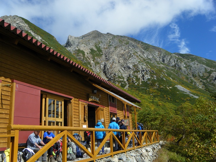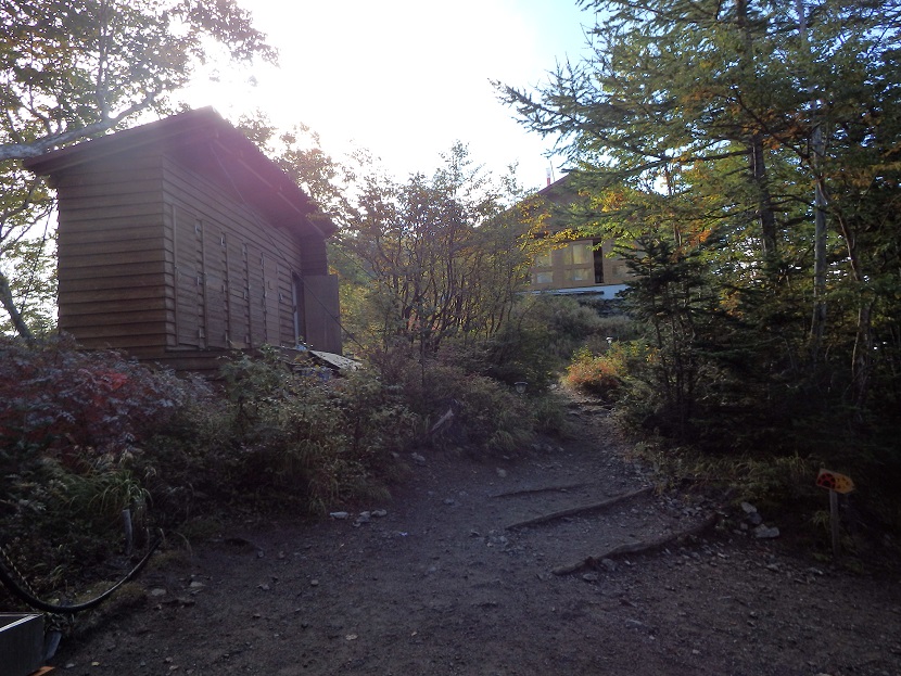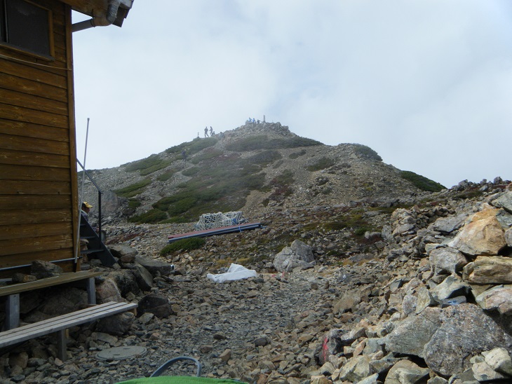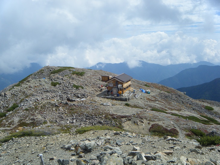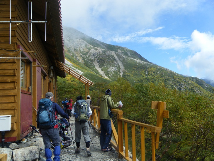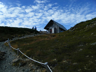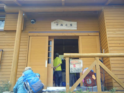 時刻は13時57分。ほんとに40分で着いた。コースタイムは50分。最後だけ8掛けで歩くことができた。ここまでの所要時間は5時間43分。コースタイムは6時間半。う~む、いつも元気な初日にしてはかかったな。最近体力の衰えをリアルに感じる。なんか俺の時代が終わった~って感じだ。あとは衰える一方か・・・。いやいや何とか老いに逆らいたい。30代までは。というわけで無事に小屋に到着した。