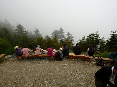 地図を見ながら「はぁ~あと2時間か」と独り言をつぶやくと「2時間もかからんよ。40分くらいだ。」と近くにいたおっちゃんに言われた。よく見たら小屋まで2時間というのは見晴台からのコースタイムであった。