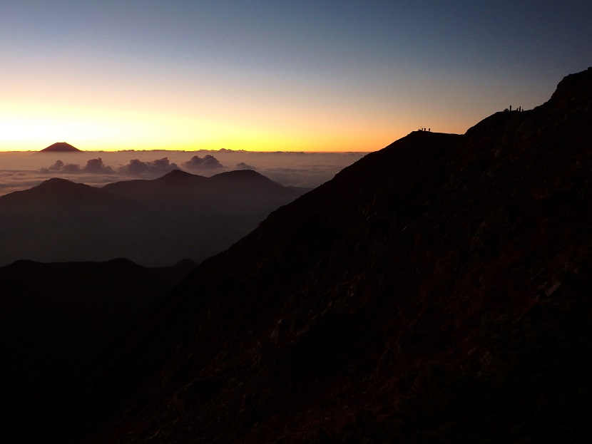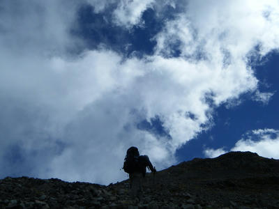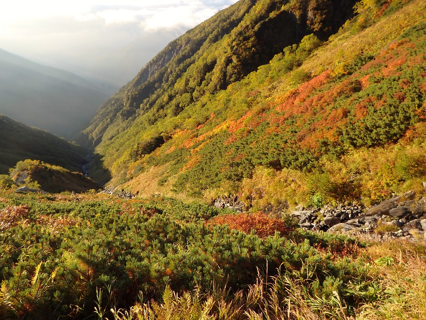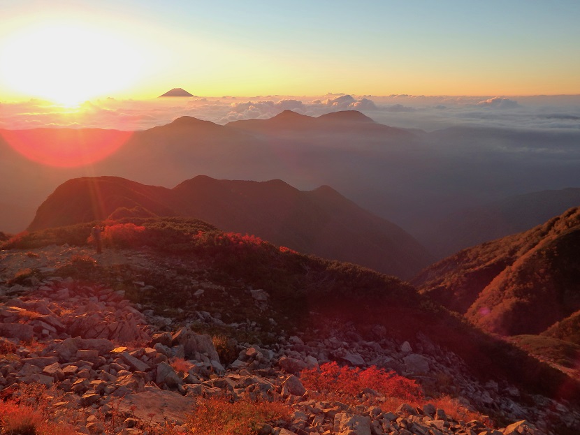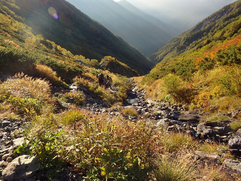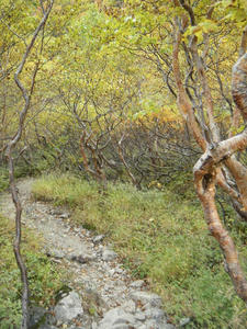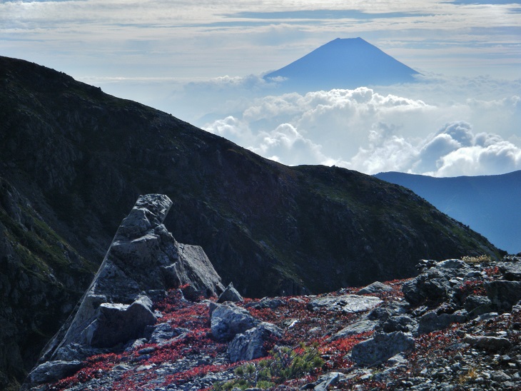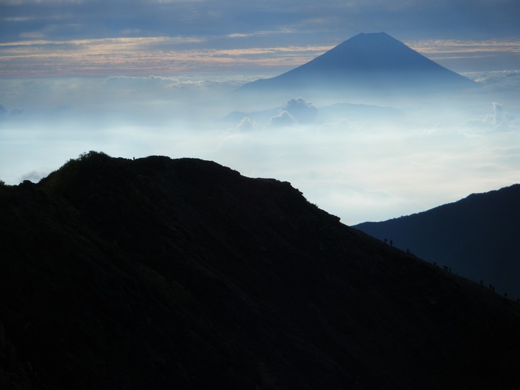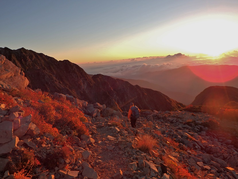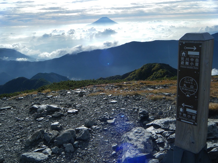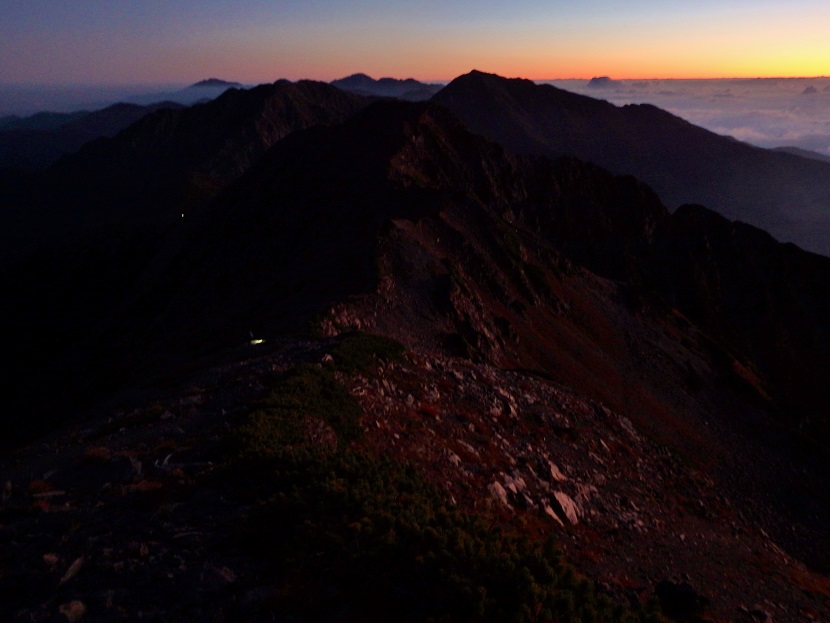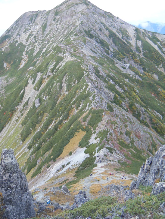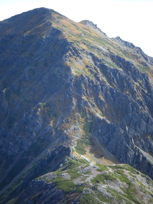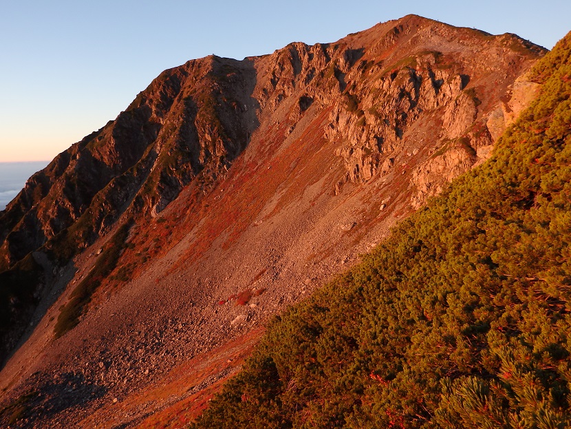 8時14分、今宵の宿泊地である千枚小屋に向け出発。今回の山行では不安材料が二つある。それは地図上に書かれている2か所の「危」マーク。千枚岳を越えたところにある「岩場のやせ尾根」と書かれたところと悪沢岳を越えたところにある「ガレた急坂」と書かれたところである。NHKの「にっぽん百名山」の悪沢岳の回も見たんだが「岩場のやせ尾根」の方はその手前の岩が非常に気になる。もともとは普通の登山道だったんだが崩壊が進み現在ではスパッと切れているのである。岩場嫌いの僕としてはそこが一番気がかりなのである。もう一つの方の「岩場のやせ尾根」の方はどうなっているのかわからん。まぁ「危」マークが付くくらいだから普通の道ではないのだろう。どちらも非常に気がかりだがそこをクリアしないと悪沢岳と赤石岳には登れない。嫌でもなんでも行かにゃならんのである。