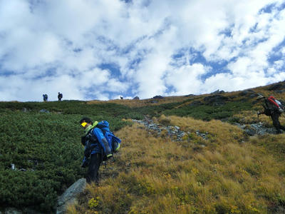 特に興味もないので池は見にいかない。時刻は13時17分。出発から5時間が経過。コースタイムは5時間40分。今の僕では小屋泊まりの装備でもコースタイムの8掛けは無理だな。