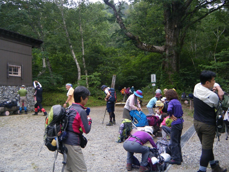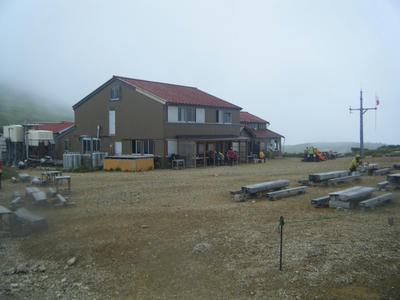 小屋に到着。さっそく受付を済ませ寝床へと案内してもらう。今日は2人で布団一つになるかもしれないとの説明を受ける。しばらくして案内されてきた3人組のおっちゃんたちは3人で二つの布団だった。