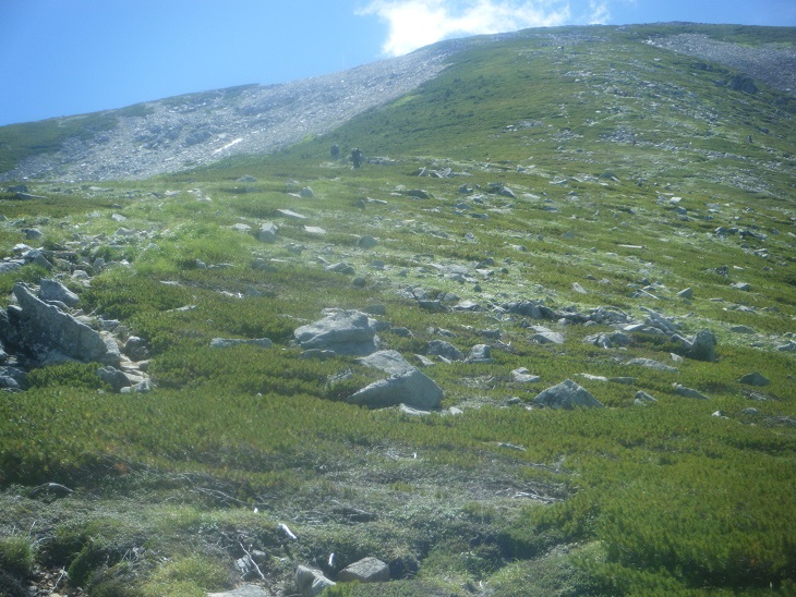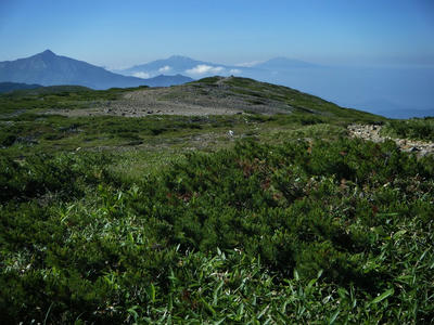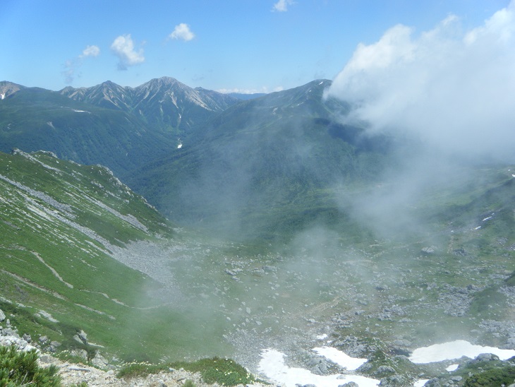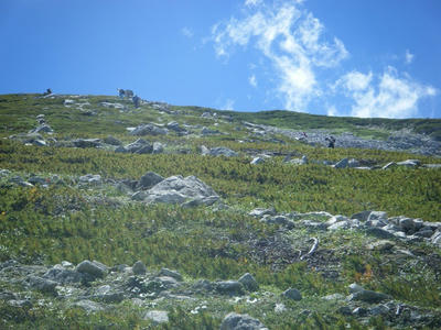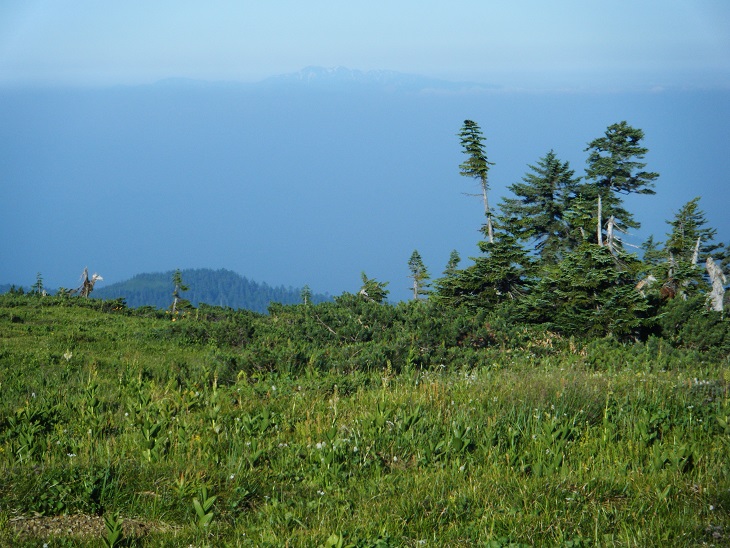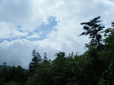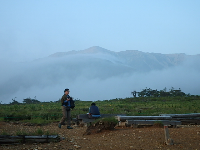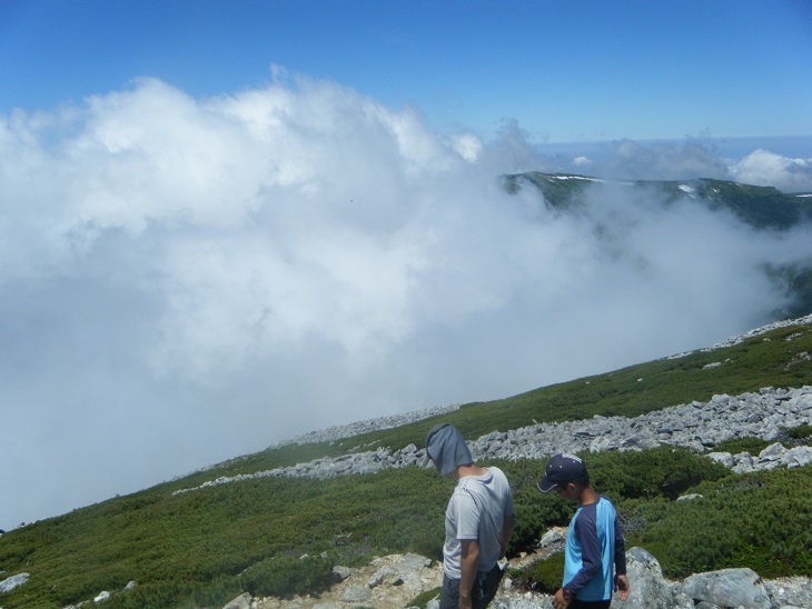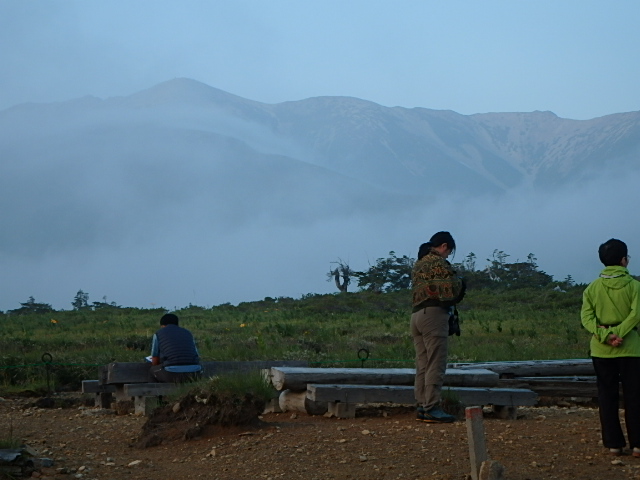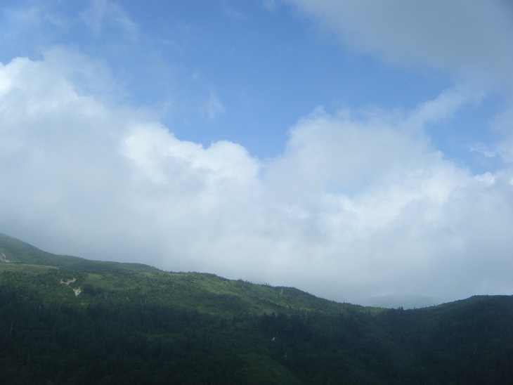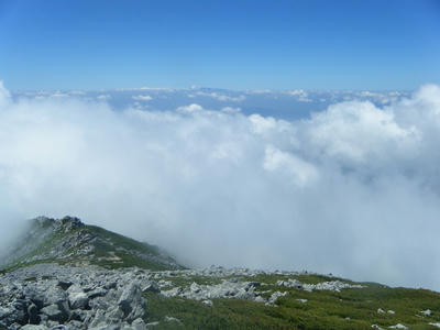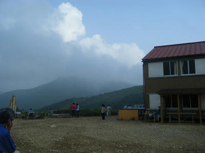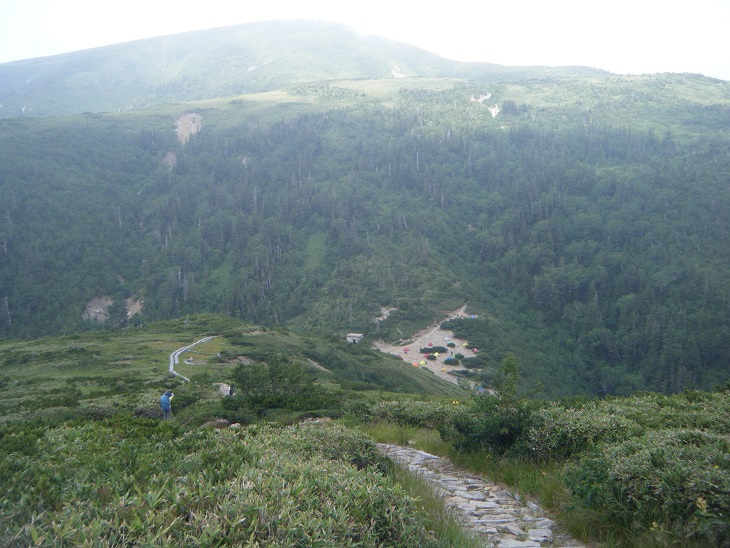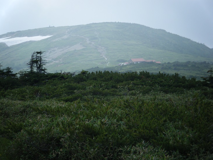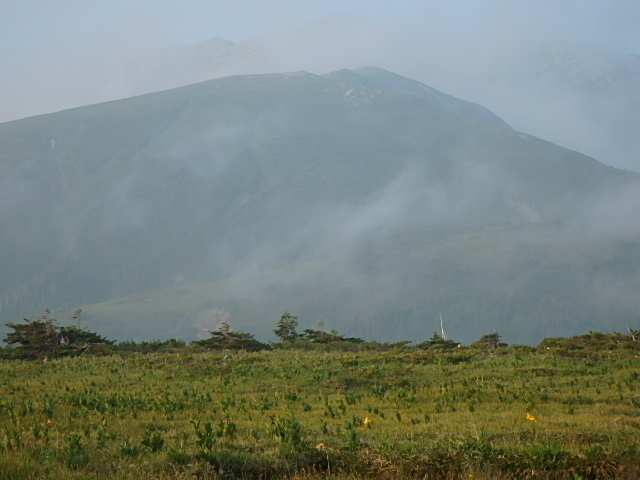 時間があるのでテン場方面へ。ガスが晴れてきたので振り返ってみた。