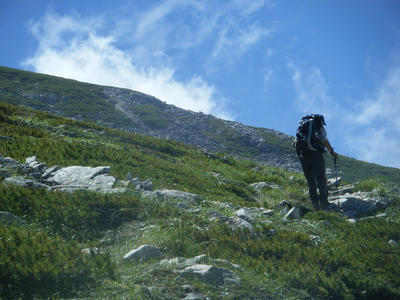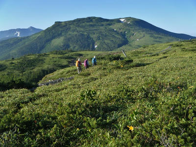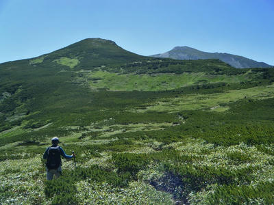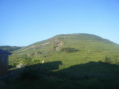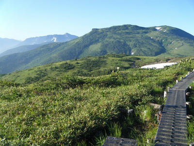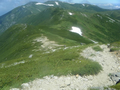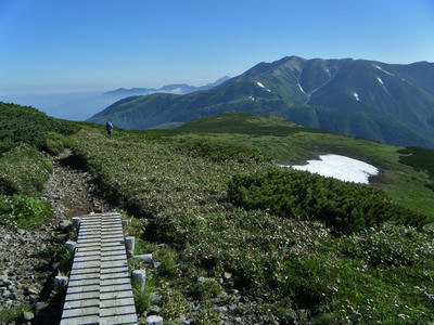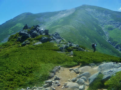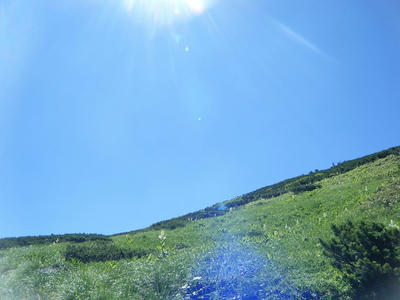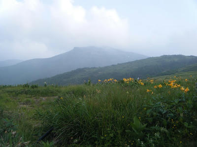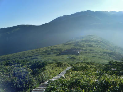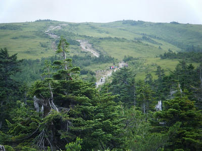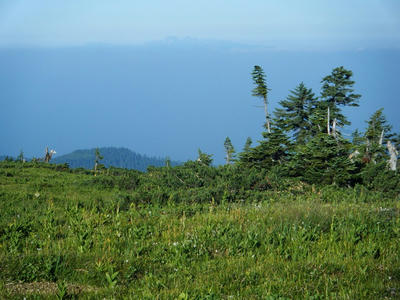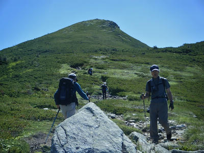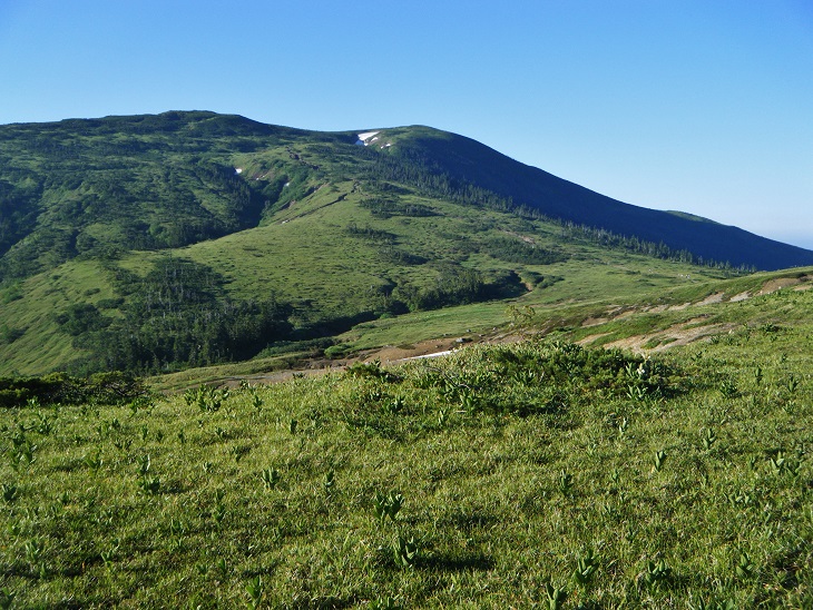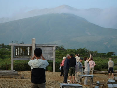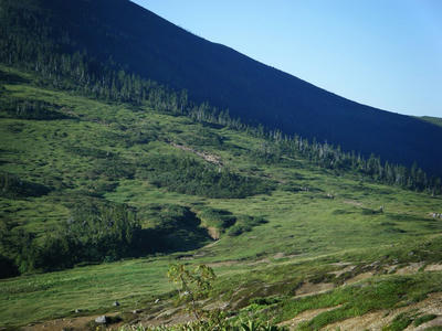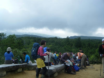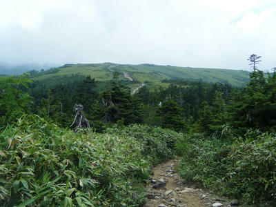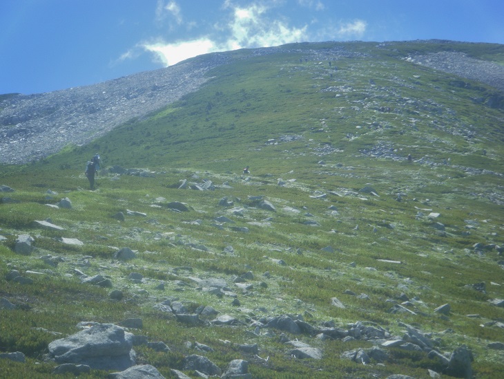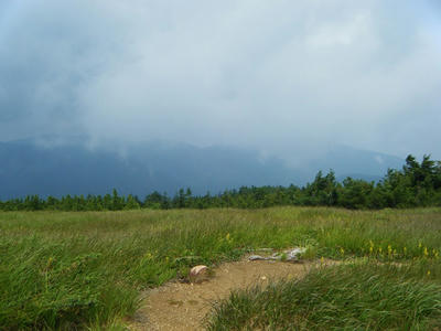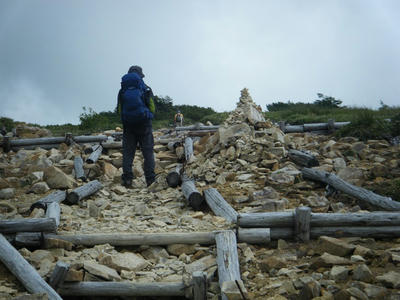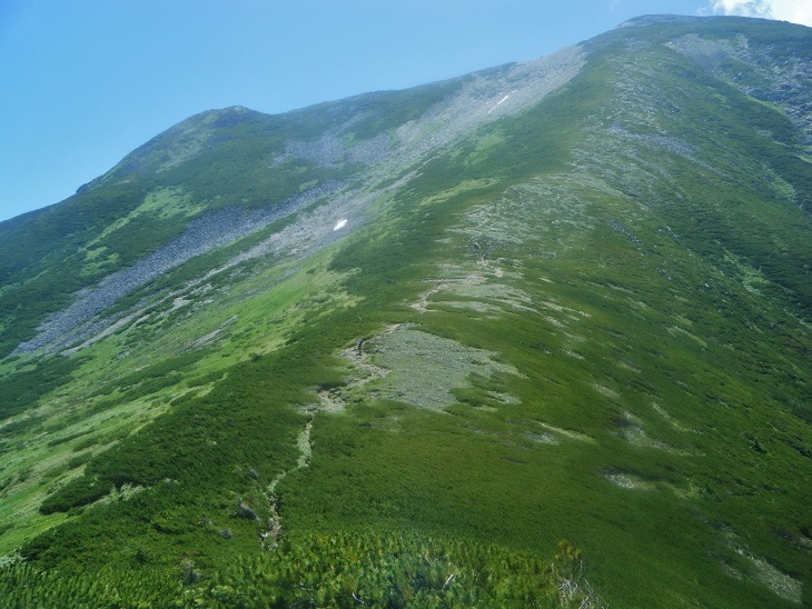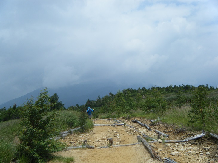 時間があるのでテン場方面へ。ガスが晴れてきたので振り返ってみた。