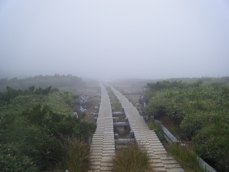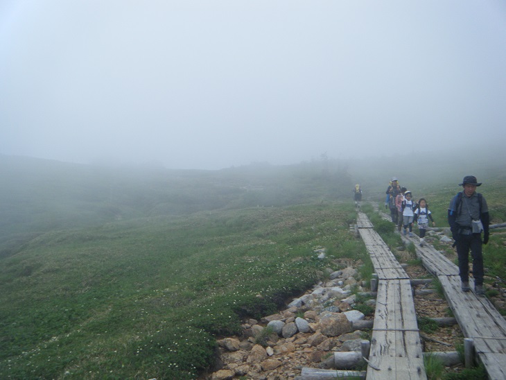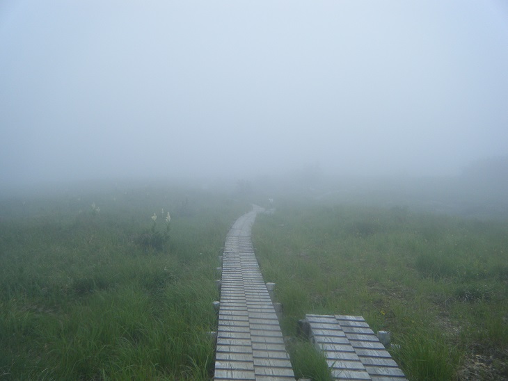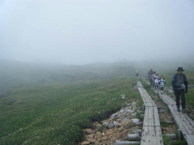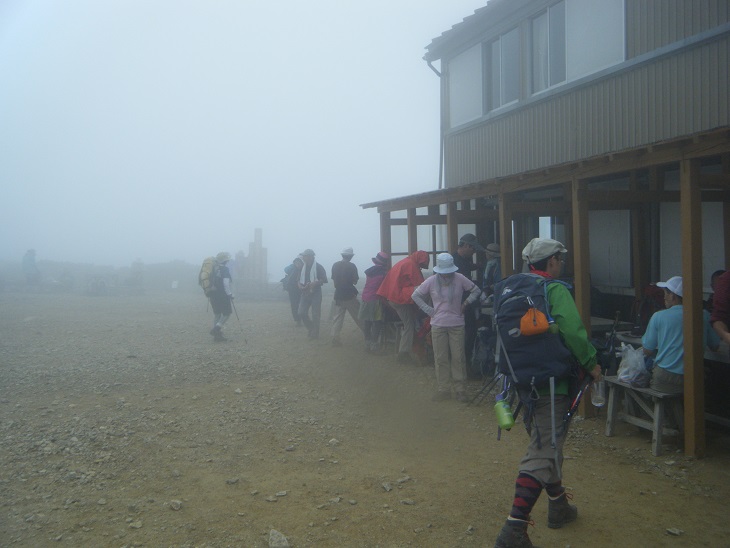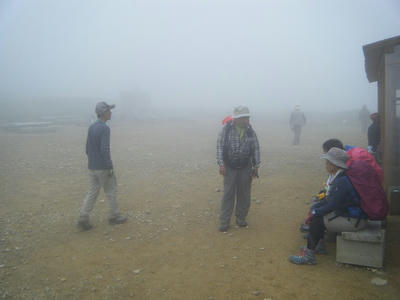 時折ガスが晴れる。でもすぐに ガスガスに逆戻り。小雨がぱらついたりもした。