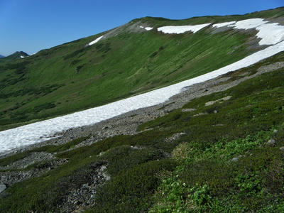 前はあそこでテント張ったな。行ってみようかとも思ったが登り返すのが面倒なのでやめといた。