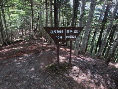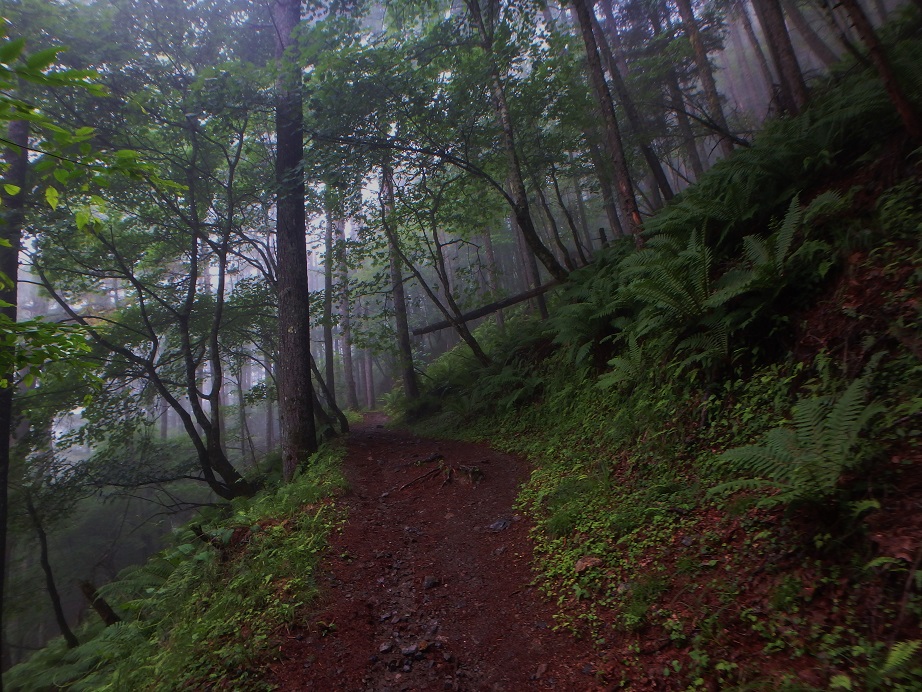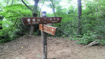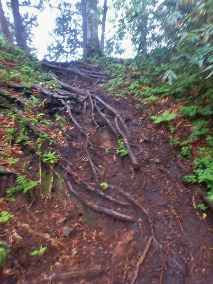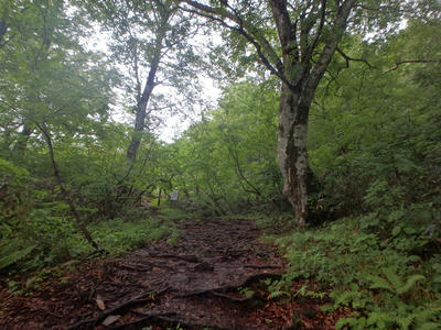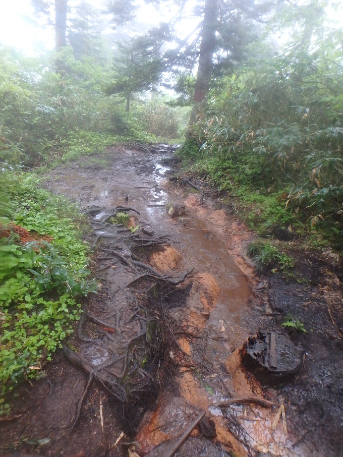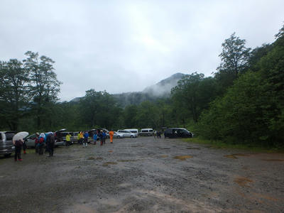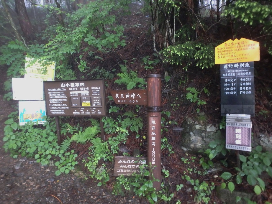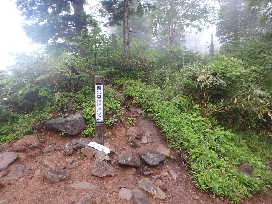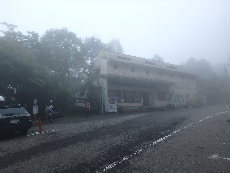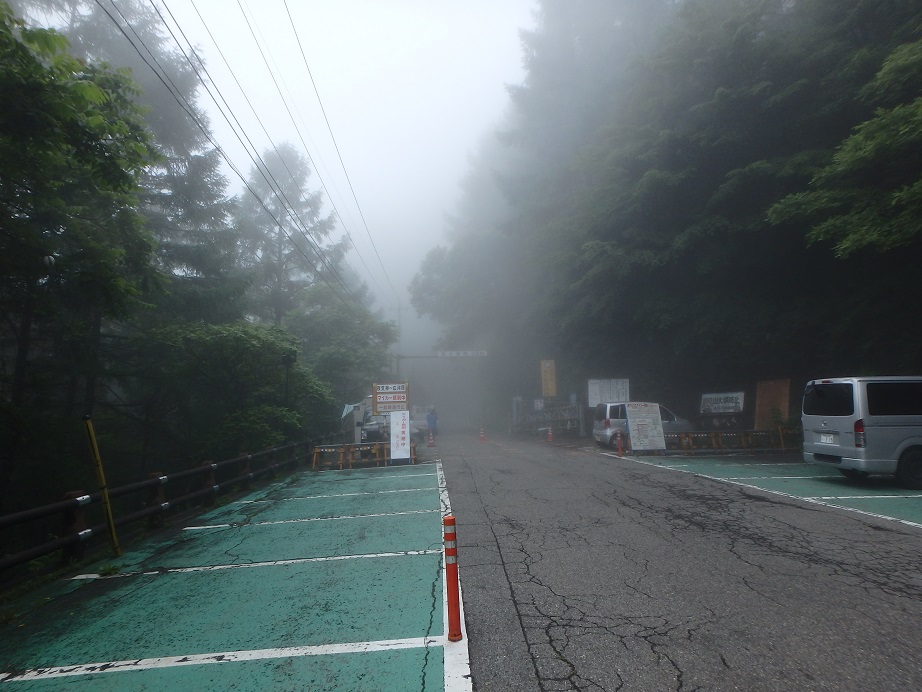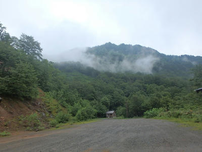 朝食と行動中の食料を購入し秋山郷方面へと走る。さらに秋山郷から小赤沢コースの3合目を目指すんだがぜーんぜん車が走ってない。天気も悪いし一人は嫌だな~と思いながら走る。そして7時40分、駐車場のある3合目に到着。