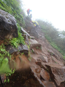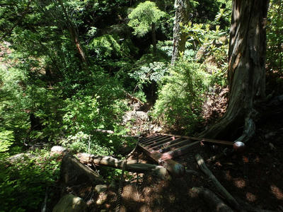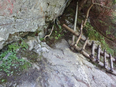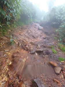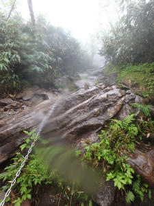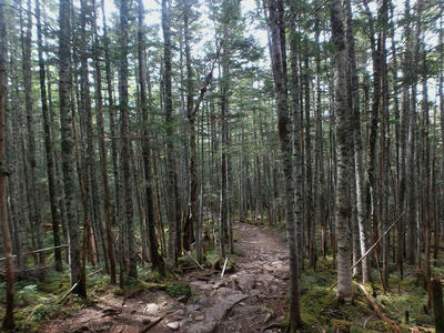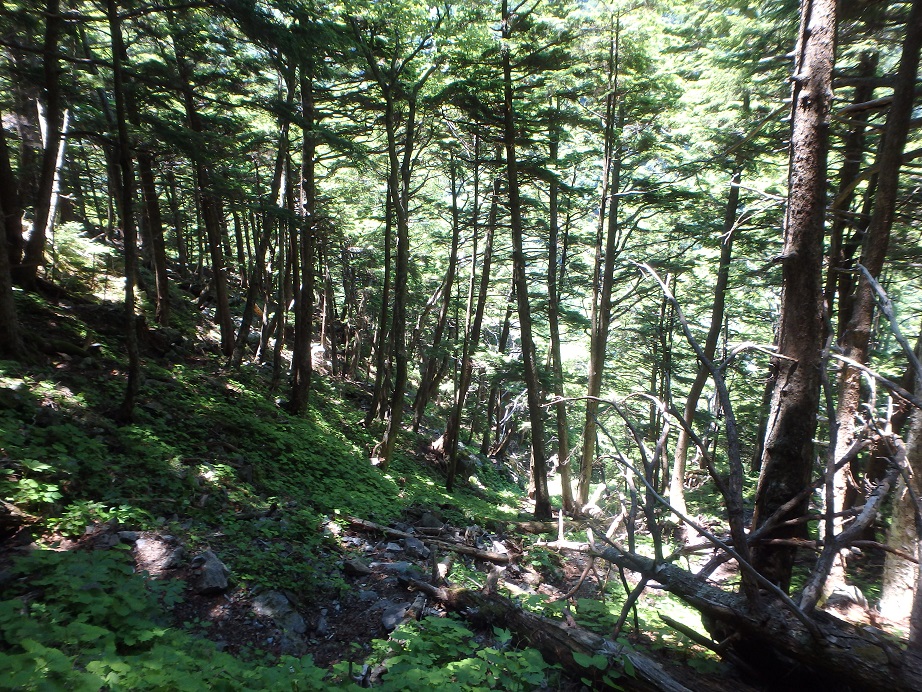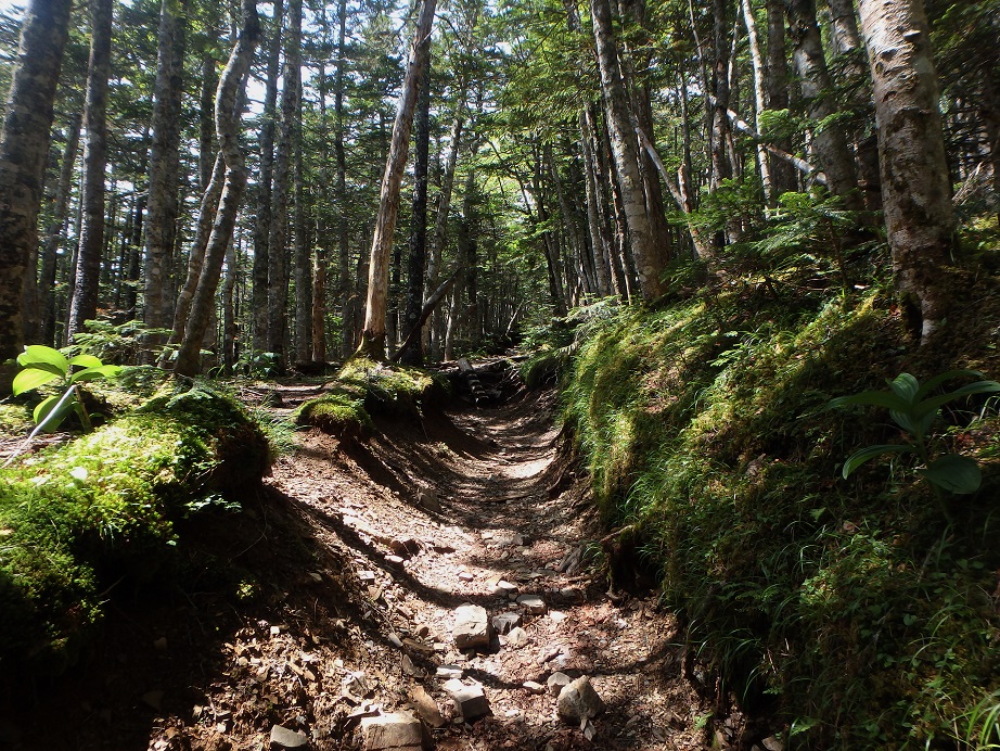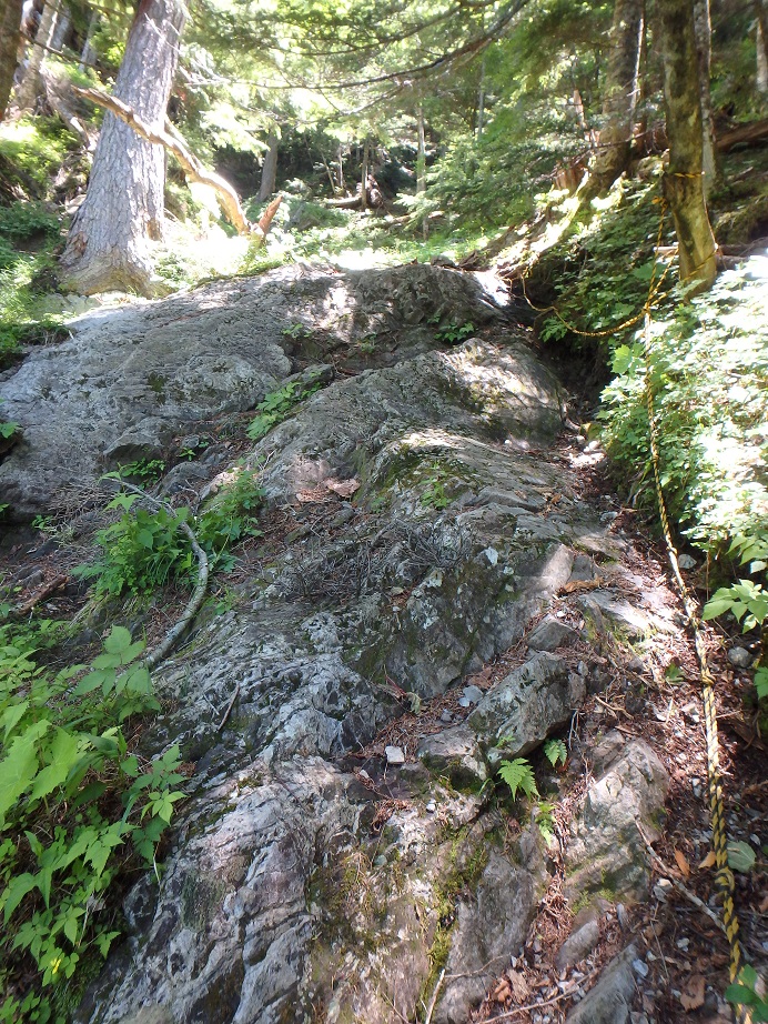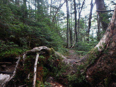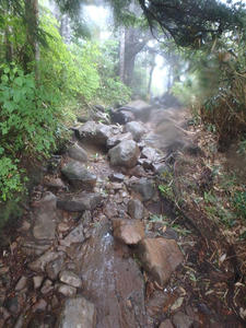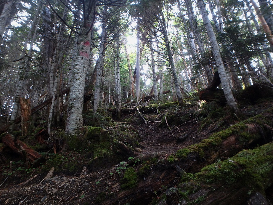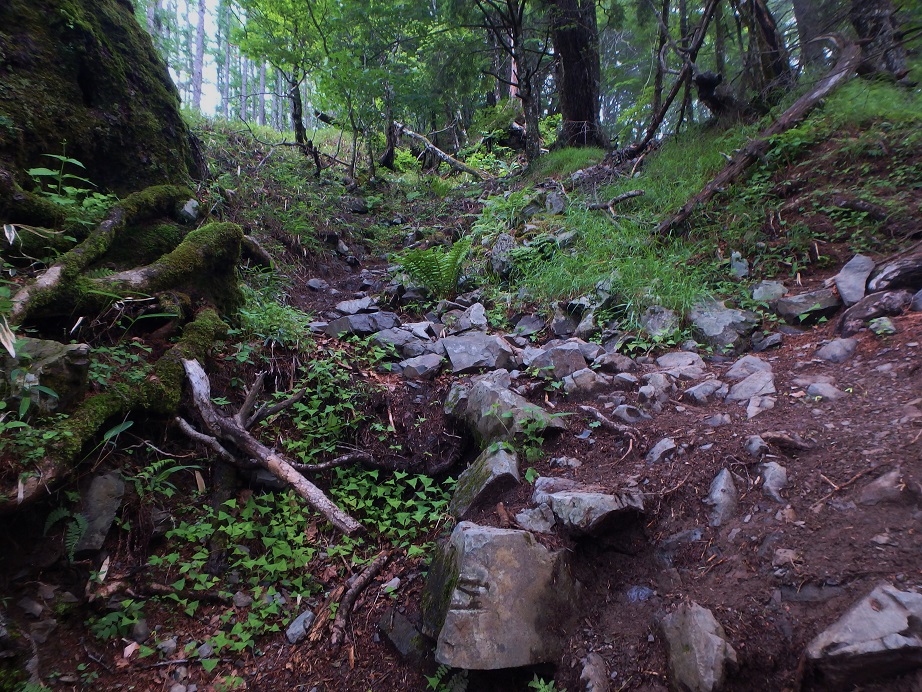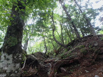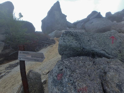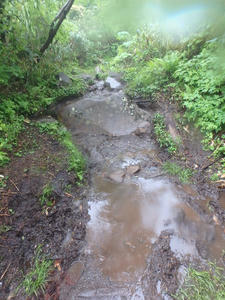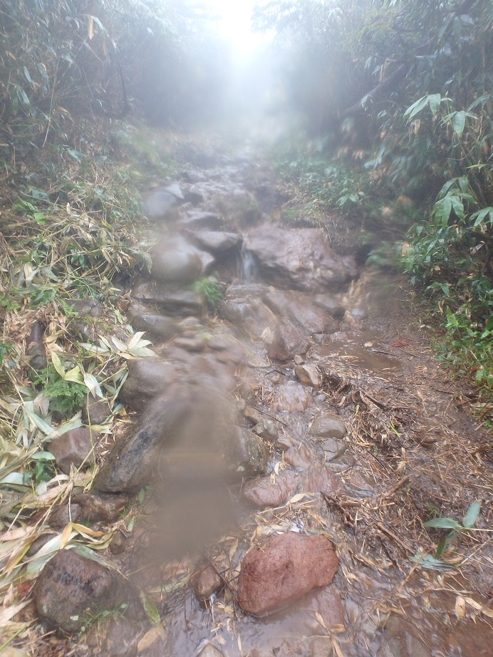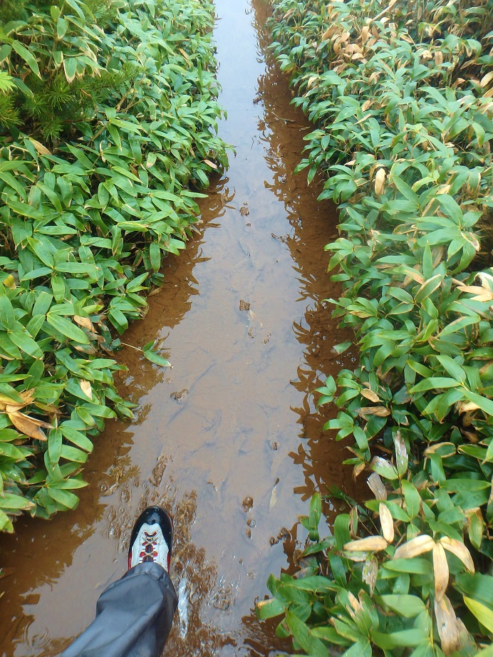 朝食と行動中の食料を購入し秋山郷方面へと走る。さらに秋山郷から小赤沢コースの3合目を目指すんだがぜーんぜん車が走ってない。天気も悪いし一人は嫌だな~と思いながら走る。そして7時40分、駐車場のある3合目に到着。